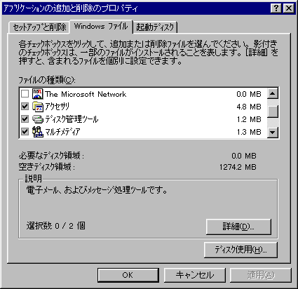 具体的には,「コントロールパネル」の「アプリケーションの追加と削除」の「Windowsファイル」の「アクセサリ」で,